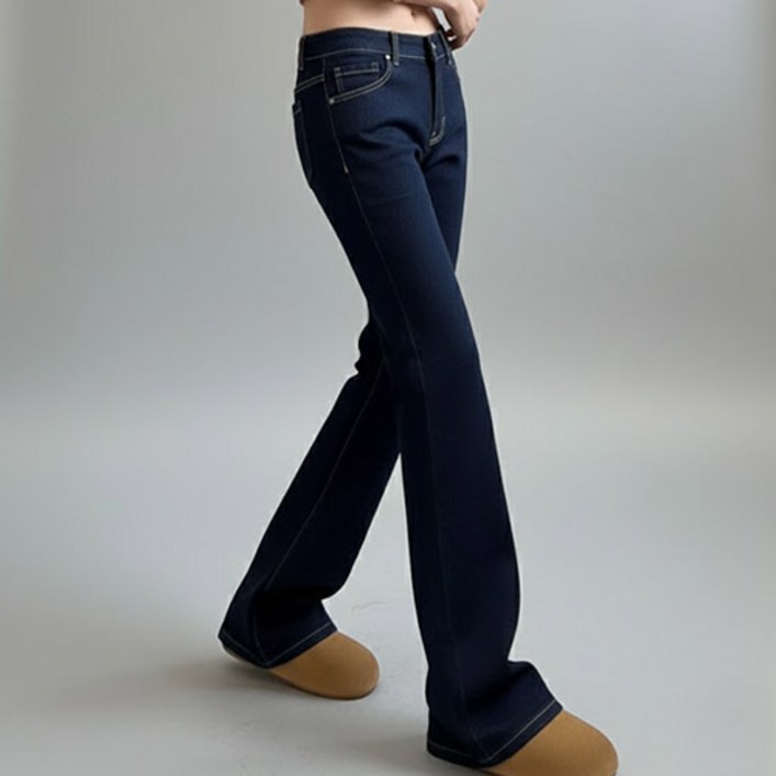 파라다이소 여성용 하이틴 로우라이즈 세미부츠컷 데님 청바지