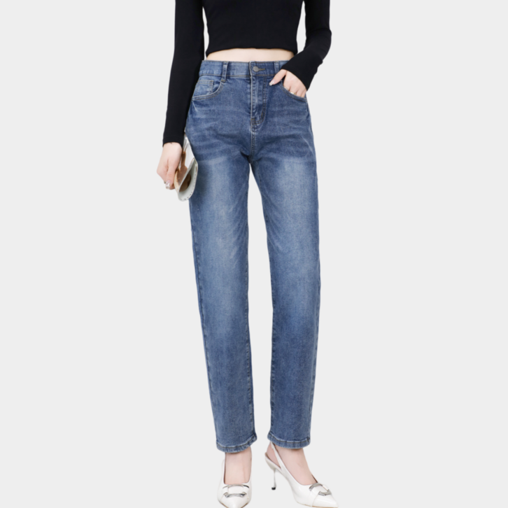 리치블랑 여성 사방스판 허리밴딩 노수선 배기 청바지 2단기장
