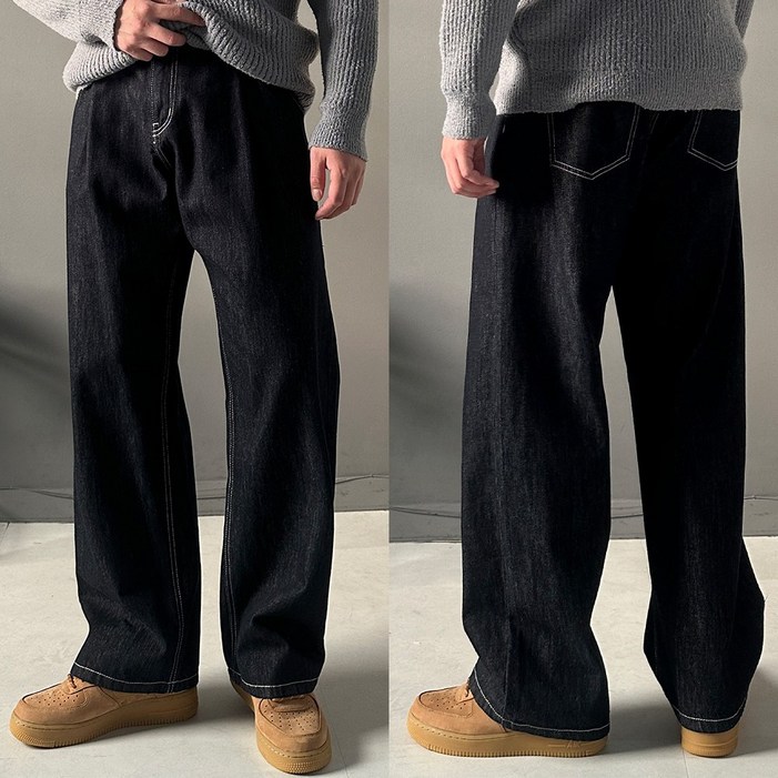 케이드 원턱 생지 데님 팬츠 남성 빅사이즈 와이드팬츠 통바지