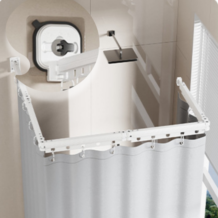 루메바스 접이식 무타공 흡착식 코너형 커브형 샤워커튼봉 세트 5단 180×200, 1개