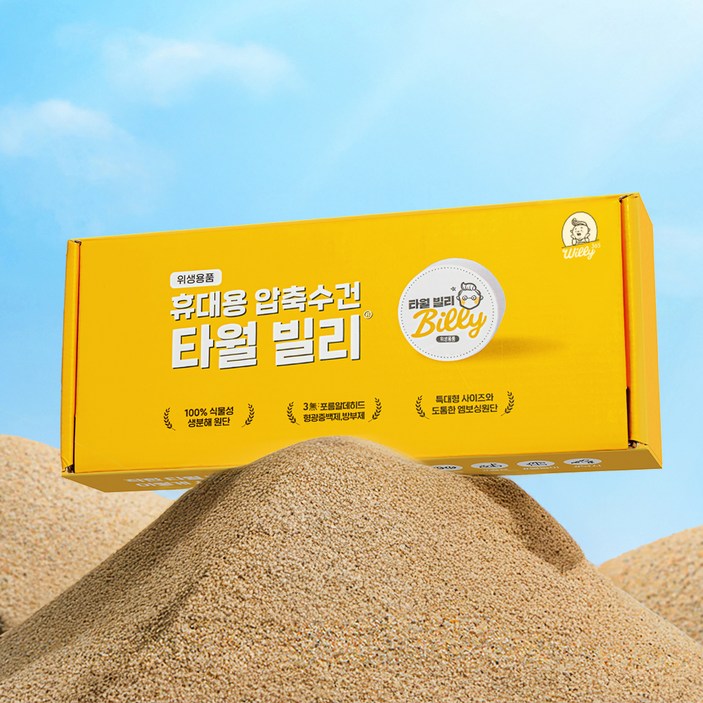타월빌리 휴대용 압축수건, 화이트, 1개