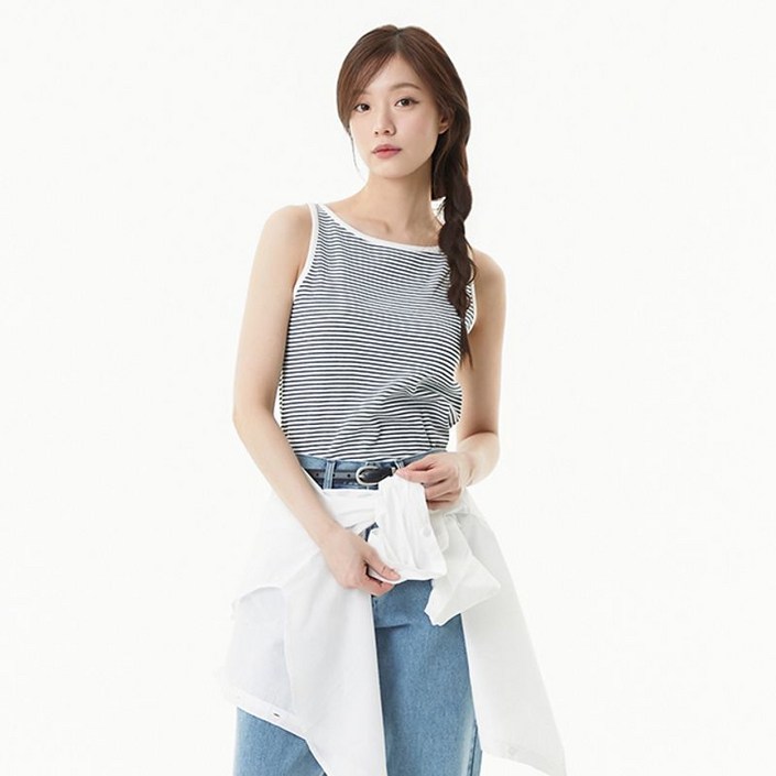 플라스틱아일랜드BEIGE스트라이프 민소매 탑 PR7CT401 883880