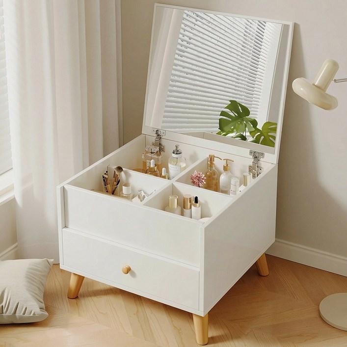 좌식 화장대 다용도 수납 화장대 거울 화장대 미니 화장대 소형 화장대, 흰색