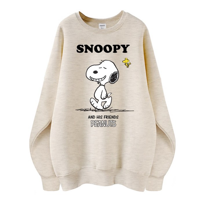 스누피 정품 남녀공용 오버핏 캐릭터 라운드 맨투맨 빅사이즈 데일리 티 루즈핏 커플 티셔츠 남자 여성 롱티 단체티 해피스누피